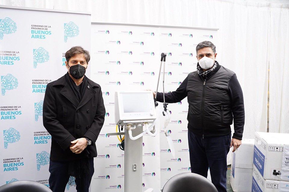 JORGE MACRI RECIBIÓ A AXEL KICILLOF EN VICENTE LÓPEZ PARA LA ENTREGA DE 5 RESPIRADORES