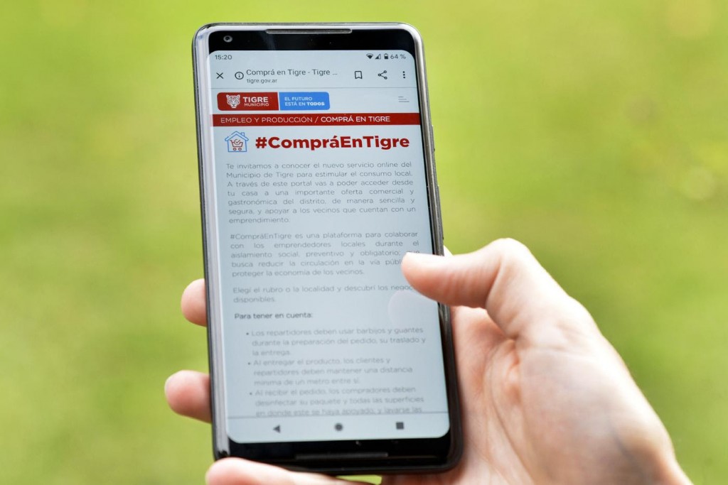 Con el propósito de estimular la economía local durante la pandemia de coronavirus, el Municipio lanzó recientemente #CompráEnTigre, una plataforma online que permite conocer la oferta comercial y gastronómica del partido. En la web www.tigre.gov.ar/compraentigre los vecinos pueden informarse sobre los más de 320 negocios adheridos hasta el momento y realizar las compras necesarias desde sus hogares.