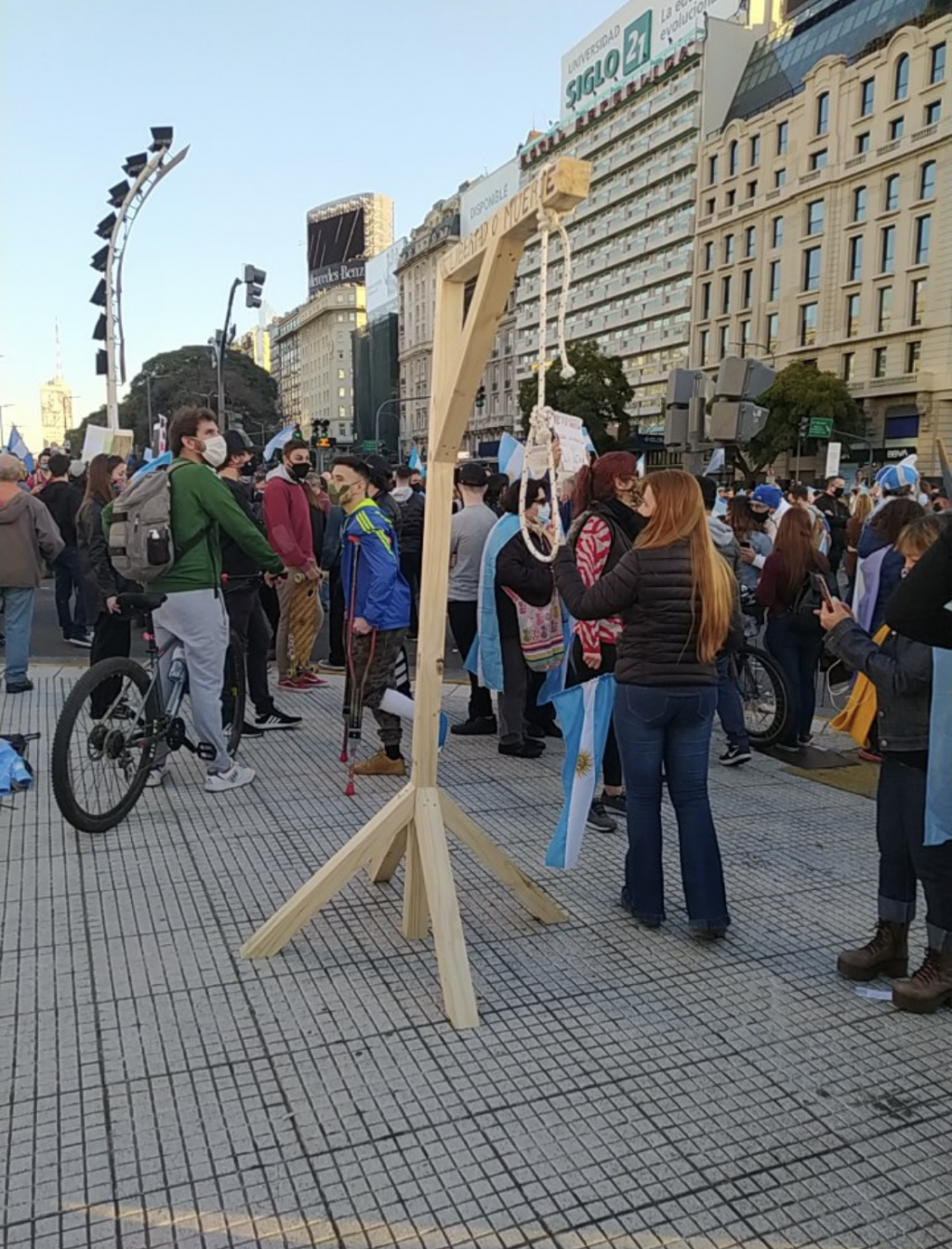 Montados en autos de alta gama y camionetas 4X4, o de a píe, con banderas argentinas y barbijos, pero sin respetar el distanciamiento social, los manifestantes expresaron una batería de consignas contra el Gobierno nacional.