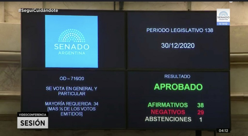 El Senado de la Nación votó el proyecto de ley de Interrupción Voluntaria del Embarazo que ya tenia media sanción de la Cámara de Diputados.