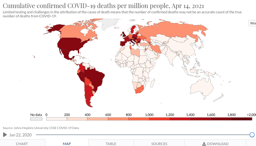 DIA A DIA LAS MUERTES POR COVID EN EL MUNDO
