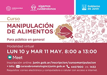 La municipalidad de Junín brindará un nuevo curso sobre Manipulación de Alimentos para público en general.