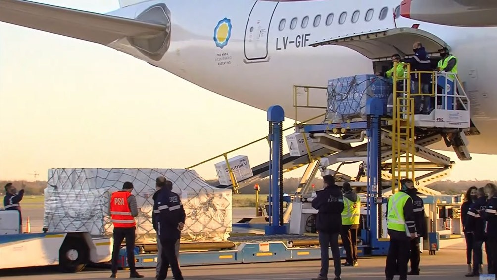 Un vuelo de Aerolíneas Argentinas llegó al país con un cargamento de componentes 1 y 2 de la vacuna Sputnik V y el primer lote de su principio activo para comenzar la producción local del fármaco contra el coronavirus.