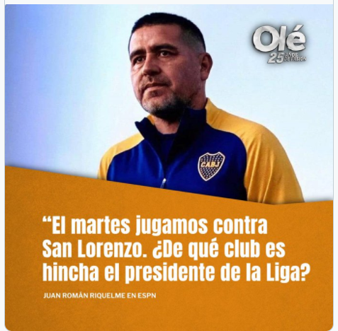 Pero además, como Boca debe jugar el martes frente a San Lorenzo por la tercera fecha, Riquelme mandó un mensaje directo al presidente de la Liga Profesional.
