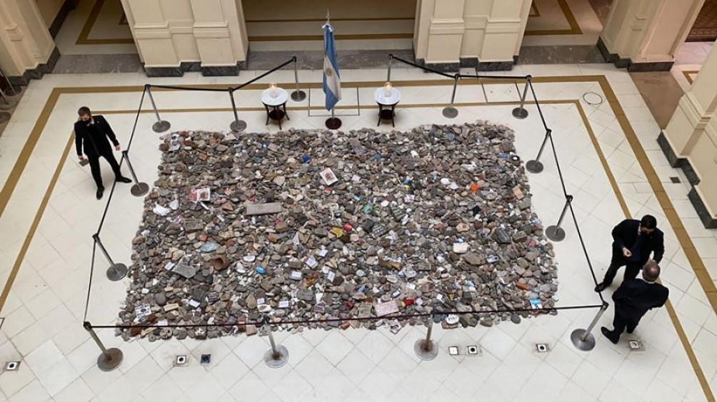 "En relación con la denominada "Marcha de las Piedras" que se realizó el lunes a la tarde en conmemoración de las víctimas del Covid-19, y finalizada la misma el gobierno nacional procedió a recoger las piedras que fueran depositadas con los nombres de las personas fallecidas", agregaron las fuentes.