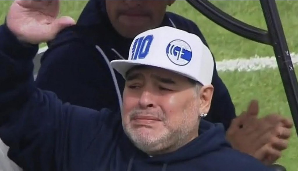 El astro Diego Armando Maradona rompió en llanto al ingresar al estadio "Juan Carmelo Zerillo", repleto con más de 25 mil hinchas de Gimnasia y Esgrima de La Plata, que se congregaron para ver su primer entrenamiento como director técnico.