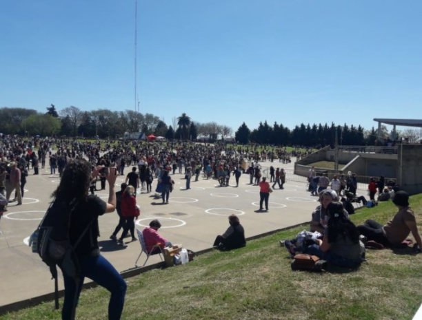 Así, se pintaron círculos en el piso del campito para remarcar la distancia social entre los peregrinos, entre otras medidas.