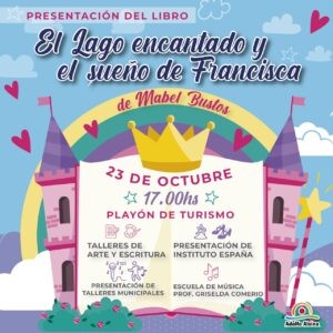 El sábado 23 de octubre a las 17 hs. se presentará el libro “El lago encantado y el sueño de Francisca” de Mabel Bustos; la cita es en el playón de la oficina de turismo y la actividad se realiza en el marco de la conmemoración de los 100 años de la fundación de Epecuén.