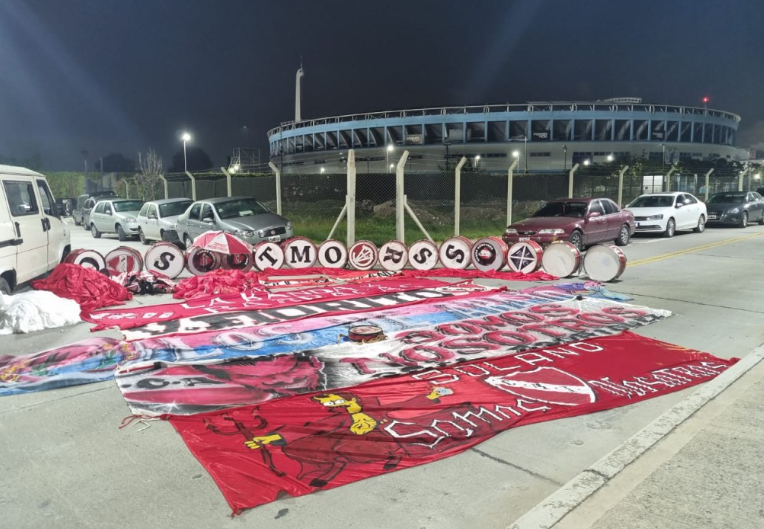 En ese sentido, "loquillo" con los integrantes de las facción "Somos nosotros" desplegó banderas, bombos, encendieron bengalas e intentaron ingresar al estadio.