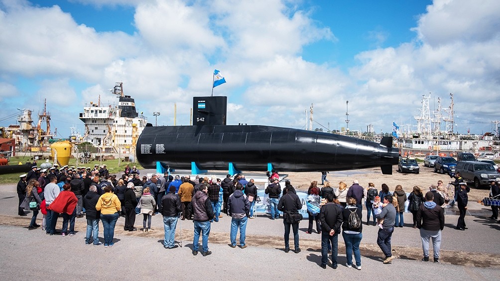 Una réplica del ARA San Juan de 11 toneladas y más de 15 metros de largo fue presentada en la ciudad de Mar del Plata, en una ceremonia en la que participaron familiares de los 44 tripulantes del submarino hundido en noviembre de 2017 y autoridades de la Armada Argentina.