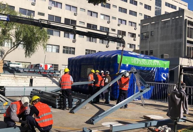 Frente al coronavirus COVID-19, el Municipio de San Isidro construye dos módulos sanitarios de emergencia en las inmediaciones del Hospital Central y el de Boulogne.