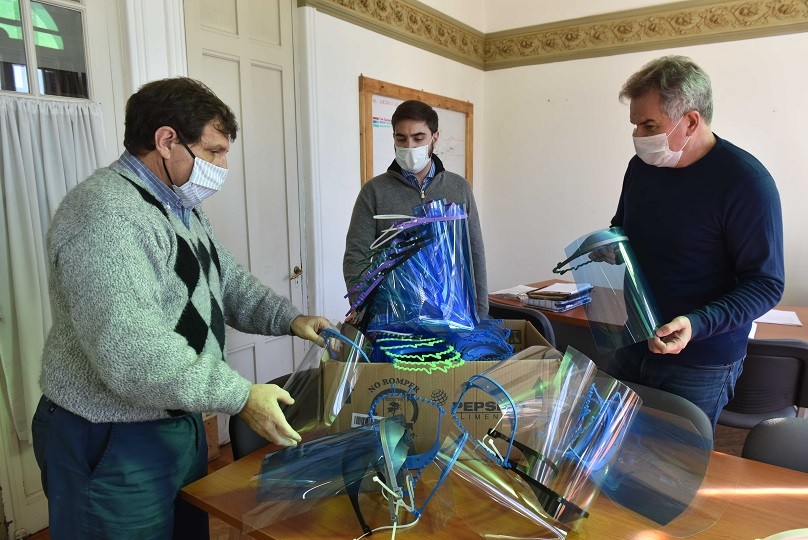 Con apoyo del Municipio, estudiantes de las escuelas técnicas 1 y 2 de nuestra ciudad elaboraron un total de 150 visores protectores que se destinarán a profesionales de la salud que cumplen funciones en esta emergencia sanitaria.