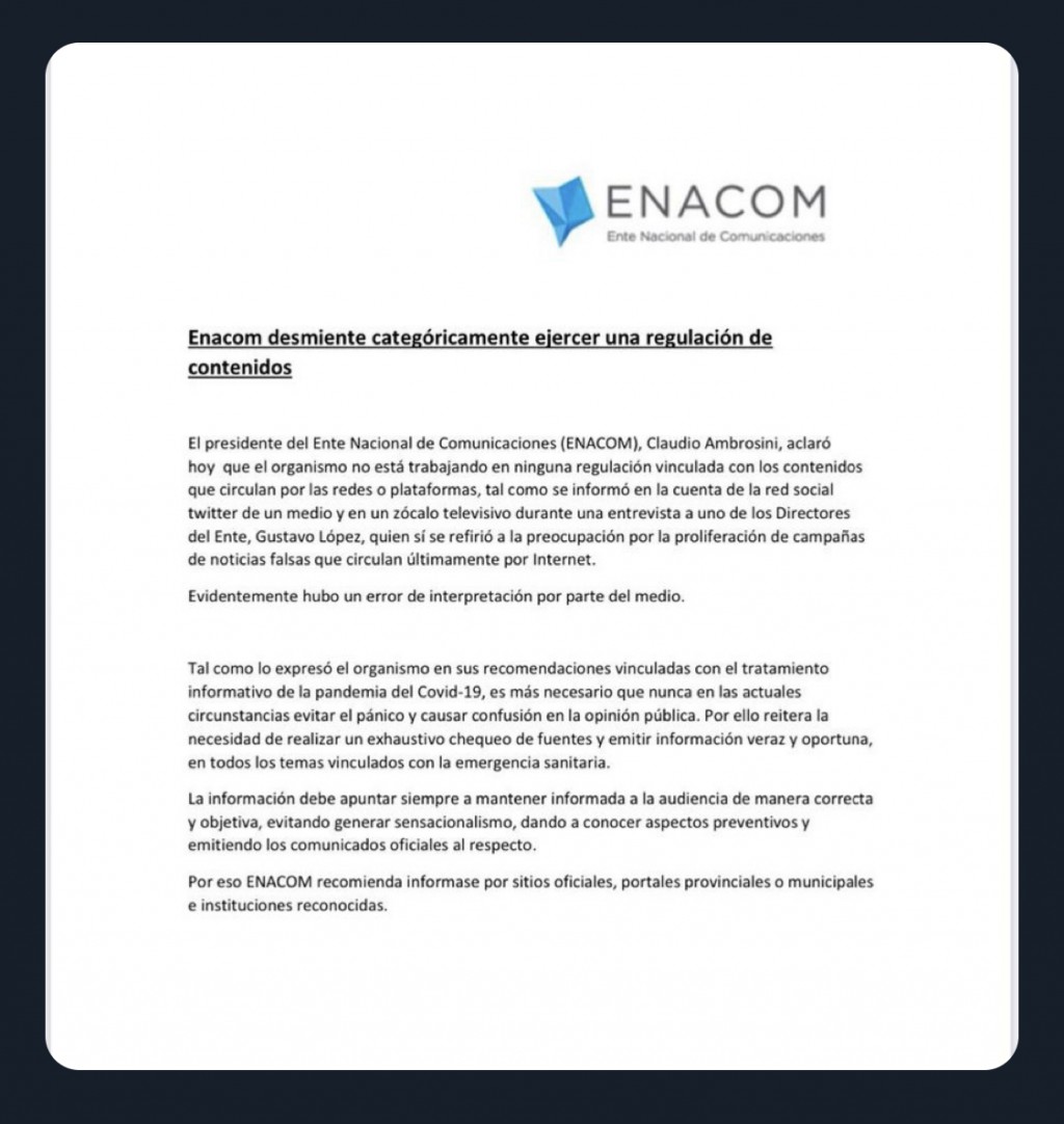 — ENACOM (@ENACOMArgentina) May 1, 2020