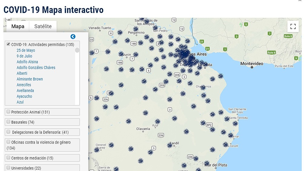 La Defensoría del Pueblo bonaerense elaboró un mapa interactivo que actualiza día a día la información sobre las actividades habilitadas en cada uno de los municipios de la provincia de Buenos Aires, en el marco del aislamiento social, preventivo y obligatorio dispuesto debido al coronavirus.