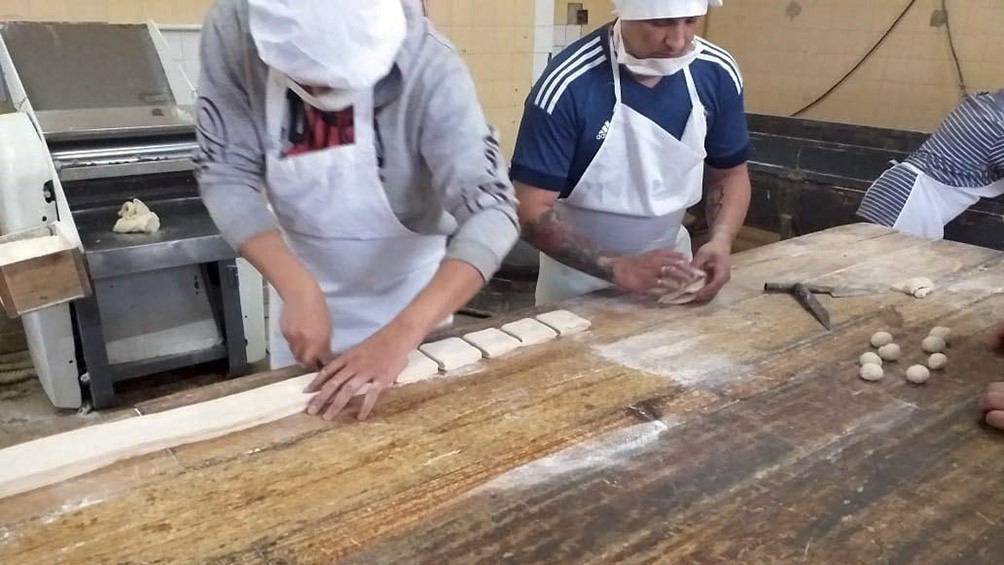 La experiencia se realizó en la panadería que funciona en la Unidad 5. Se hicieron 300 pasteles y 200 kilos de pan que fueron distribuídos por All Boys Solidario y la Secretaría de Desarrollo Social de Mercedes.