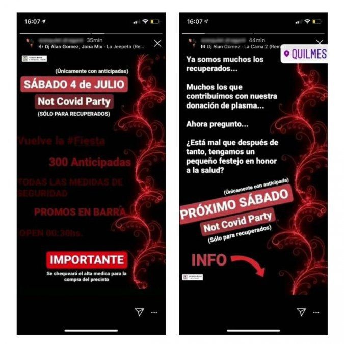 La convocatoria al "Not Covid Party" fue difundida a través de Instagram y exige como requisito contar con "el alta médica para la compra" de la entrada.