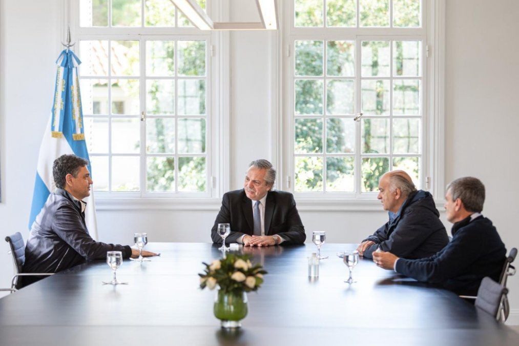 El presidente Alberto Fernández se reunió hoy en la Residencia de Olivos con los intendentes del PRO Jorge Macri (Vicente López) y Néstor Grindetti (Lanús) en "un tono de llamado a la concordia", luego del duro comunicado que publicó Juntos por el Cambio durante el fin de semana a raíz del crimen de Fabián Gutiérrez.