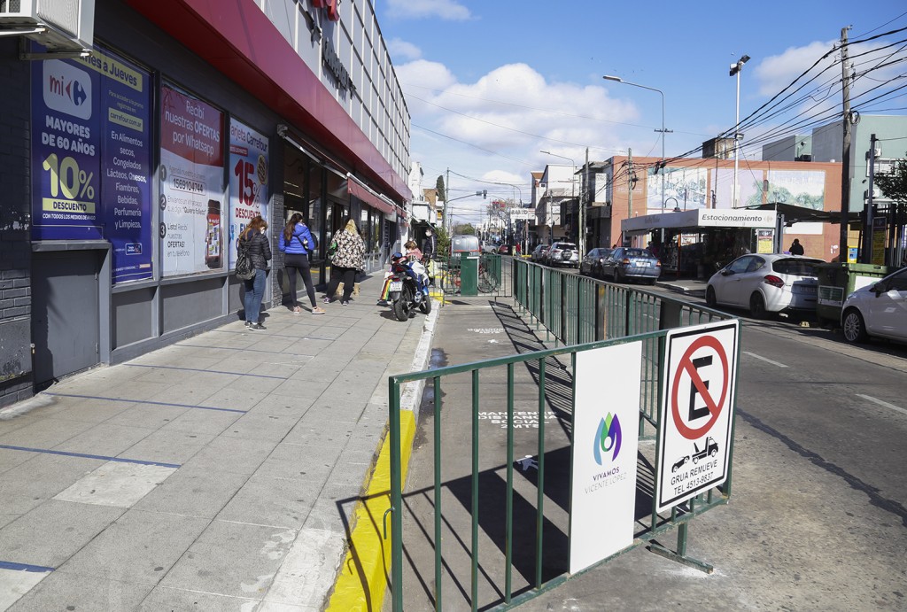 “La delegación municipal detectó que había comercios con una alta demanda de público en veredas muy angostas lo que generaba que entre el peatón común y el cliente a la espera de ser atendido no se podía dar una distancia social óptima. Se definió que en pequeños tramos se elimine el estacionamiento y amplíe en 1.80 metros la vereda”, sostuvo Darío Antiñolo, secretario de Tránsito, Transporte Público y Seguridad Vial.