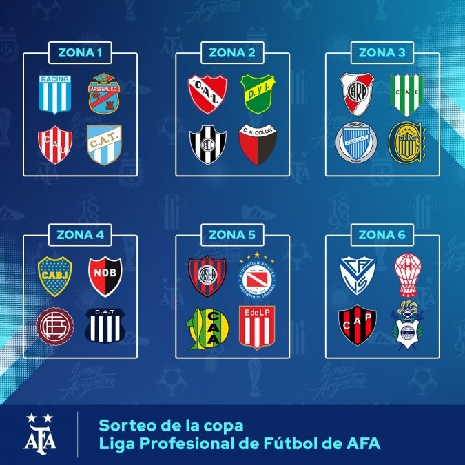 Los grupos quedaron definidos por: Racing, Atlético Tucumán, Arsenal y Unión (Grupo 1); Independiente, Defensa y Justicia, Central Córdoba de Santiago del Estero y Colón de Santa Fe (Grupo 2); River, Godoy Cruz, Banfield y Rosario Central (Grupo 3); Boca, Lanús, Talleres y Newell's Old Boys (Grupo 4); San Lorenzo, Argentinos Juniors, Aldosivi y Estudiantes LP (Grupo 5) y Vélez, Huracán, Patronato y Gimnasia LP (Grupo 6).