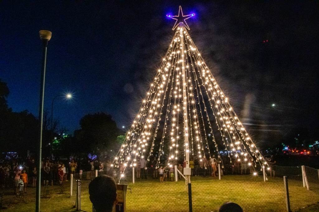 El intendente de Junín, Pablo Petrecca, encabezó el acto en el que se encendieron las luces del tradicional árbol de Navidad, ubicado en la fuente de Malvinas (Av. San Martin y Rivadavia).