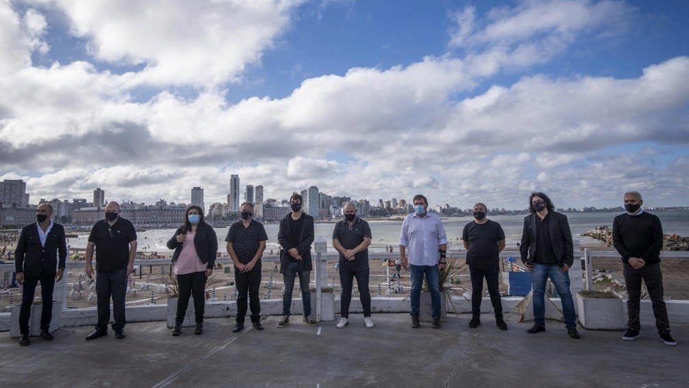 Artistas, productores teatrales y autoridades del partido de General Pueyrredon participaron en la terraza del Torreón del Monje de "Mar del Plata levanta el telón", presentación de la temporada de espectáculos en esa ciudad en la antesala de las restricciones de circulación nocturna por el aumento de los casos de coronavirus.
