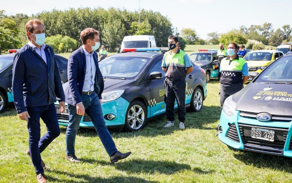 Como había ocurrido hace unos días en Lanús, hoy le tocó el turno a La Plata: Santilli se sacó una foto con Julio Garro, el intendente local, delante de una seria de patrulleros flamantes que servirán para reforzar la Guardia Urbana de Prevención (GUP), una fuerza de prevención propia que la capital provincial puso en marcha en 2018, cuyos efectivos se multiplicaron por cuatro desde entonces.
