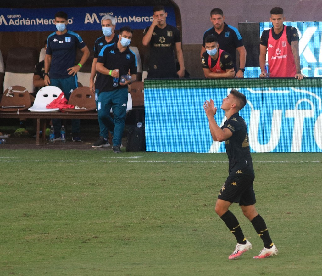 El debutante Ivan Maggi Festeja el segundo gol de Racing que enfrenta a Platense por la quinta fecha de la Liga Profesional.