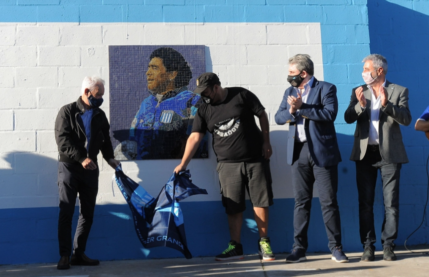 Al lado de la imagen se colocó una placa con al siguiente leyenda: "Racing Club, a la memoria de Diego A. Maradona. El mejor jugador de todos los tiempos quien fue director técnico de nuestro equipo durante el año 1995".