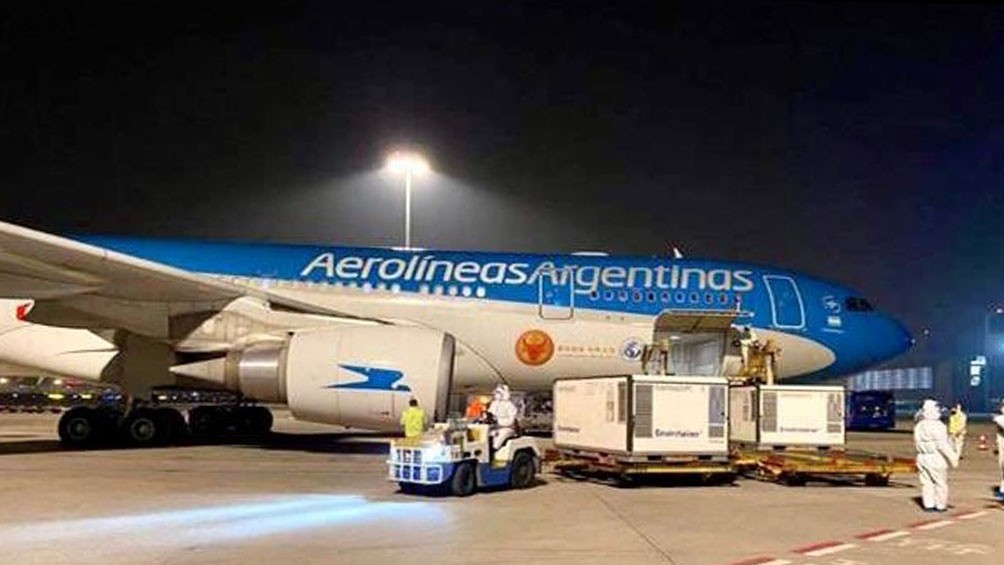LLEGÓ A EZEIZA EL DUODÉCIMO VUELO DE AEROLÍNEAS QUE TRAE 800 MIL DOSIS DE VACUNAS SPUTNIK V