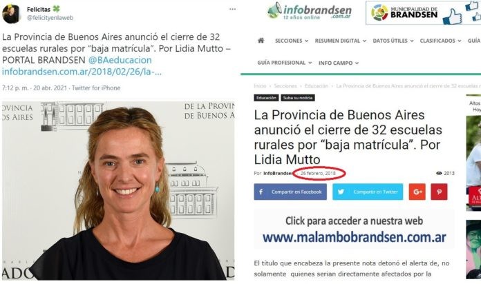 Sin embargo, la legisladora macrista omitió un detalle, el artículo data de febrero del año 2018, es decir, durante la gestión de Vidal, que por ese entonces justificó el cierre de las escuelas por el bajo número de alumnos que asistían. A las pocas horas Beccar Varela borró el mensaje en las redes, pero los usuarios lograron realizar capturas que dejaron en evidencia el fallido de la senadora.