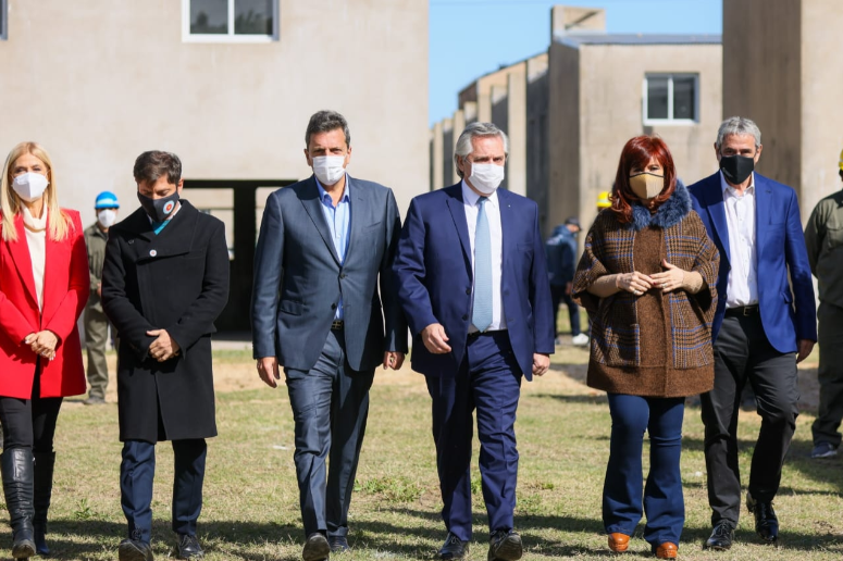 “Saquen esta foto. No se olviden nunca. Aquí estamos los que estamos convencidos de lo que hay que hacer en la Argentina”, apuntó el Presidente en el inicio de su discurso junto a Massa, Cristina Kirchner; al ministro de Desarrollo Territorial y Hábitat, Jorge Ferraresi; al gobernador bonaerense, Axel Kicillof, y su vice, Verónica Magario; y al intendente de Ensenada, Mario Secco.