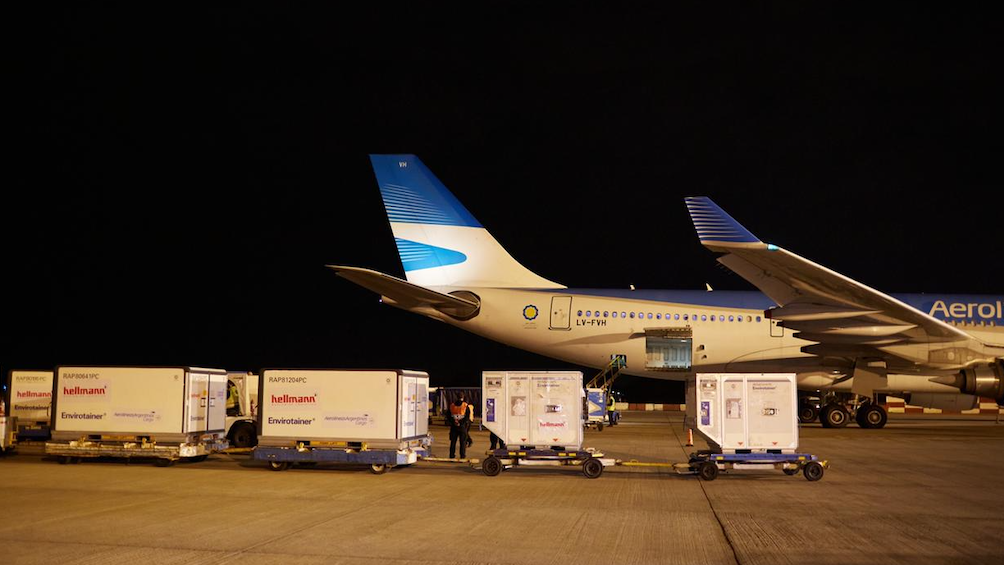 Aerolíneas Argentinas lleva completados hasta ahora un total de 30 vuelos para el transporte de vacunas desde el inicio de la pandemia, de los cuales 9 tuvieron como destino a Beijing, de donde se trajeron 6.731.200 de dosis.