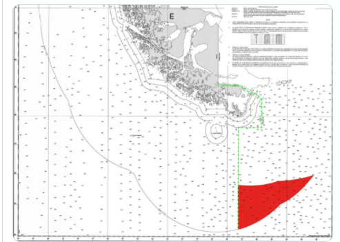 La linea verde muestra el meridiano sobre el cual se acordó el Tratado d 1984.El área roja muestra el avance q pretende Piñera. La Plataforma Continental Argentina q voto x unanimidad el Congreso es la q presentamos en 2009 y aprobó la ONU sin objeción de Chile