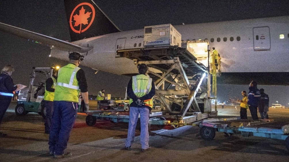 Las vacunas arribaron en un vuelo de la compañía canadiense Air Canada