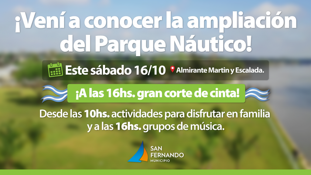 El Municipio de San Fernando invita a los vecinos a la inauguración de la ampliación del Parque Náutico, ubicado en Almirante Martin y Escalada.