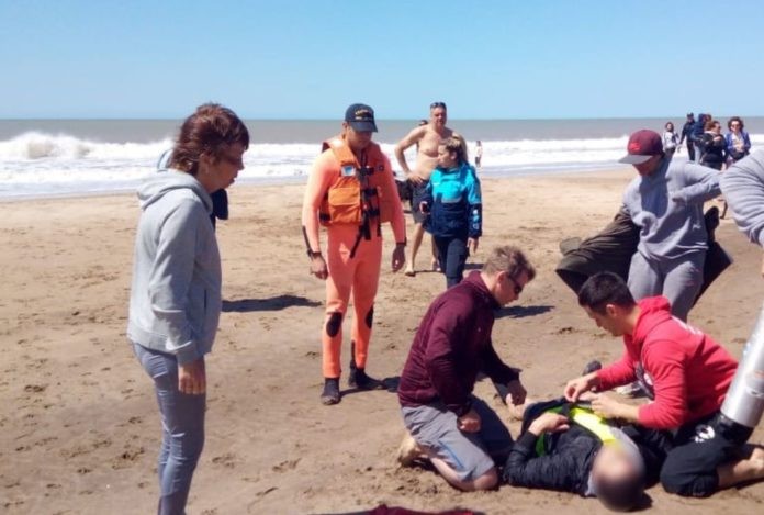 Para el rescate, los agentes especializados utilizaron una moto de agua. Tras localizar al kayakista, a unos 600 metros de la costa de la localidad de Valeria del Mar, partido de Pinamar, sacaron al hombre del agua, que había caído y no podía volver a su kayak ni a la costa.