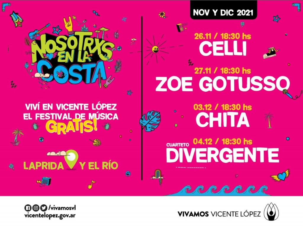 Durante noviembre y diciembre, en Vicente López se presenta “Nosotrxs en la Costa”, un festival de música frente al río para disfrutar con familia y amigos. La entrada es gratuita.