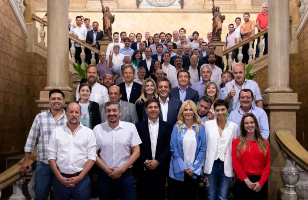 El gobernador Axel Kicllof con Máximo Kirchner, Sergio Massa e intendentes bonaerenses.