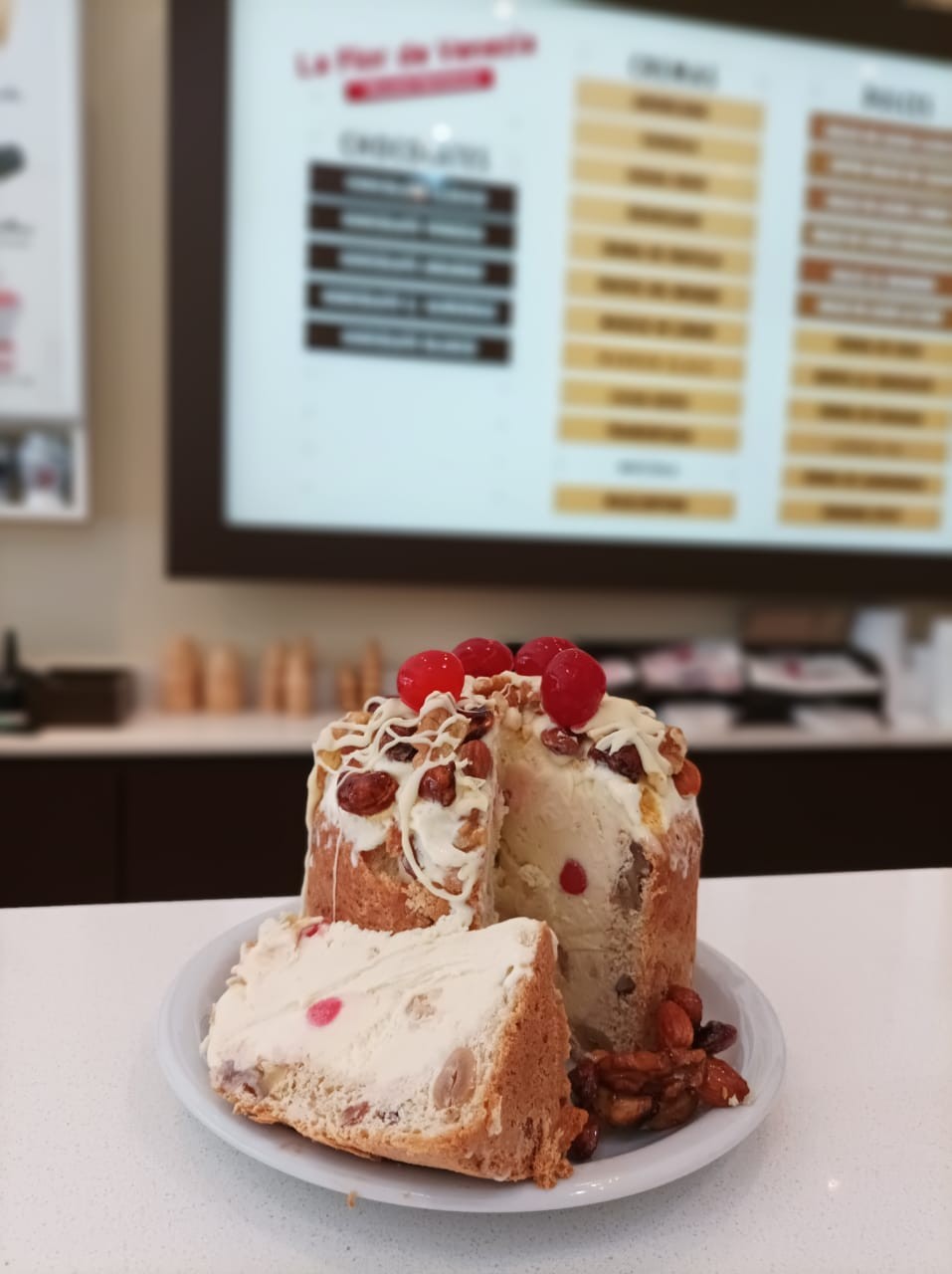 La heladeria La Flor de Venecia de la localidad de La Lucila creo para las fiestas de navidad y fin de año un exquisito postre gourmet: el Pan Dulce Helado.