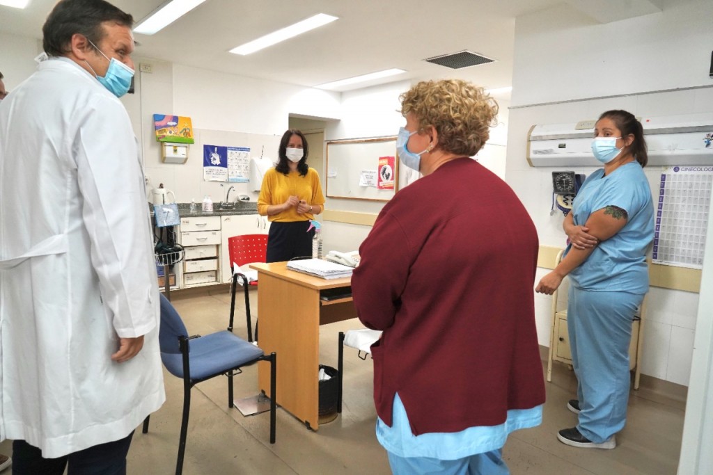 La intendenta de Vicente López, Soledad Martínez, acompañada del secretario de Salud, Andrés Scarsi, y el director de la Maternidad, Sergio Balbiano, recorrió la Maternidad Santa Rosa y dialogó junto al equipo médico.