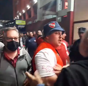 Varias personas fueron a increpar al presidente del "Rojo" luego de la caída como local 2-1 con Racing. El momento de la furia de los socios quedó grabado en videos donde se ve como el líder camionero debió salir escoltado.