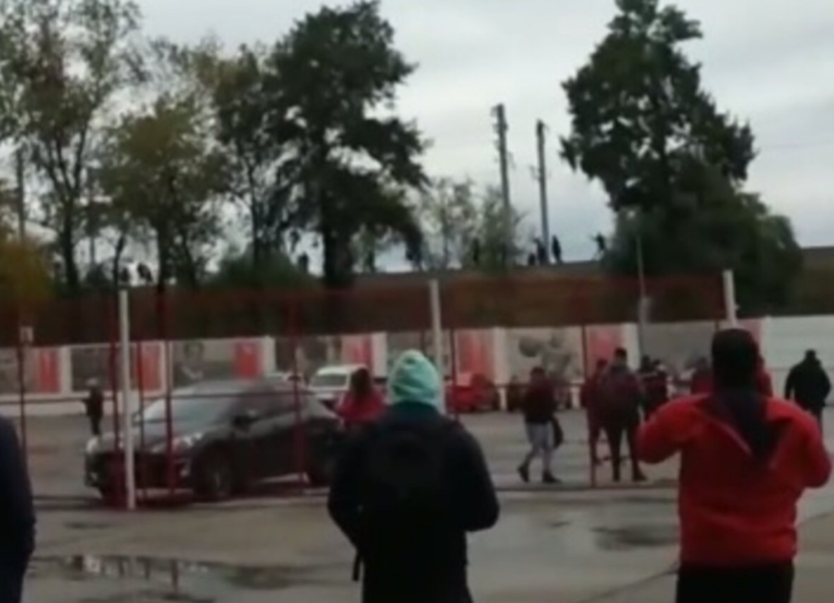 Según testigos, los barras arrojaron piedras, otros objetos contundentes y hasta se escucharon disparos de armas de fuego, mientras un grupo se desplazaba por las vías del tren Roca, cuyo ramal hacia La Plata pasa junto a uno de los playones de estacionamiento del estadio.