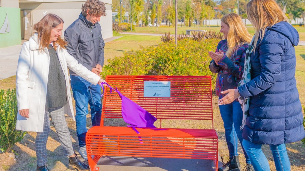 NI UNA MENOS EN SAN FERNANDO: PRESENTARON UN BANCO ROJO CONTRA LA VIOLENCIA DE GÉNERO Y UN TÓTEM DE SEGURIDAD