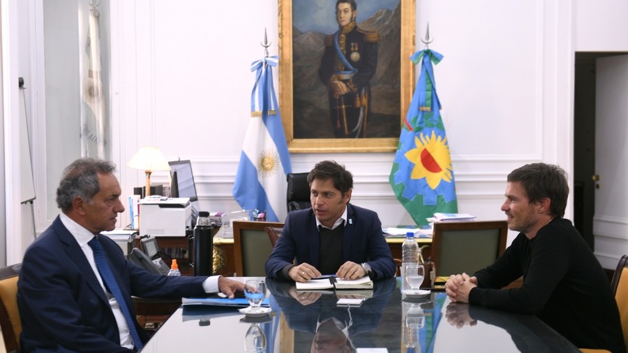 El gobernador de la provincia de Buenos Aires, Axel Kicillof, recibió en la Casa de Gobierno al flamante ministro de Desarrollo Productivo de la Nación, Daniel Scioli, y a su par bonaerense de Producción, Ciencia e Innovación Tecnológica, Augusto Costa, para abordar la agenda de trabajo conjunto y profundizar políticas para fomentar el desarrollo productivo.