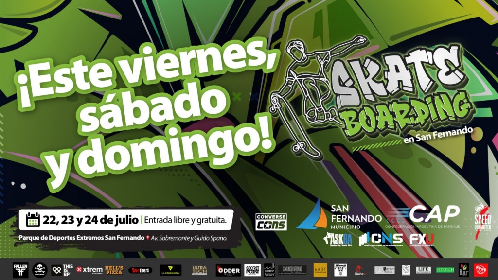 Este domingo 24 de julio en el Parque Municipal de Deportes Extremos finaliza el ‘Open San Fernando’, preselectivo para el World Championship de Río de Janeiro. El sábado 23 desde las 12hs también habrá una exhibición de Freestyle Rap. La inscripción continuará abierta hasta el miércoles 20 de julio inclusive.