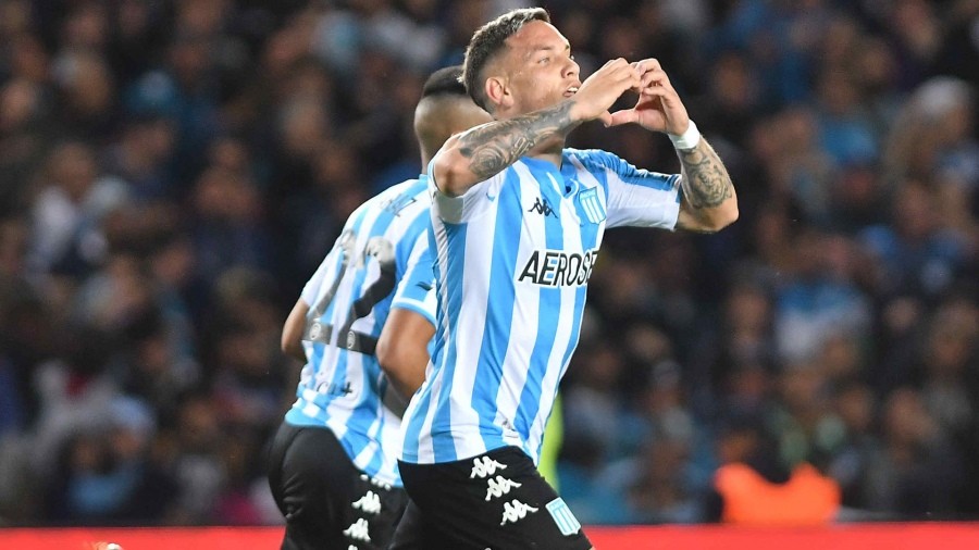 Copetti celebra el empate de Racing ante Unión (foto AGENCIA TELAM).