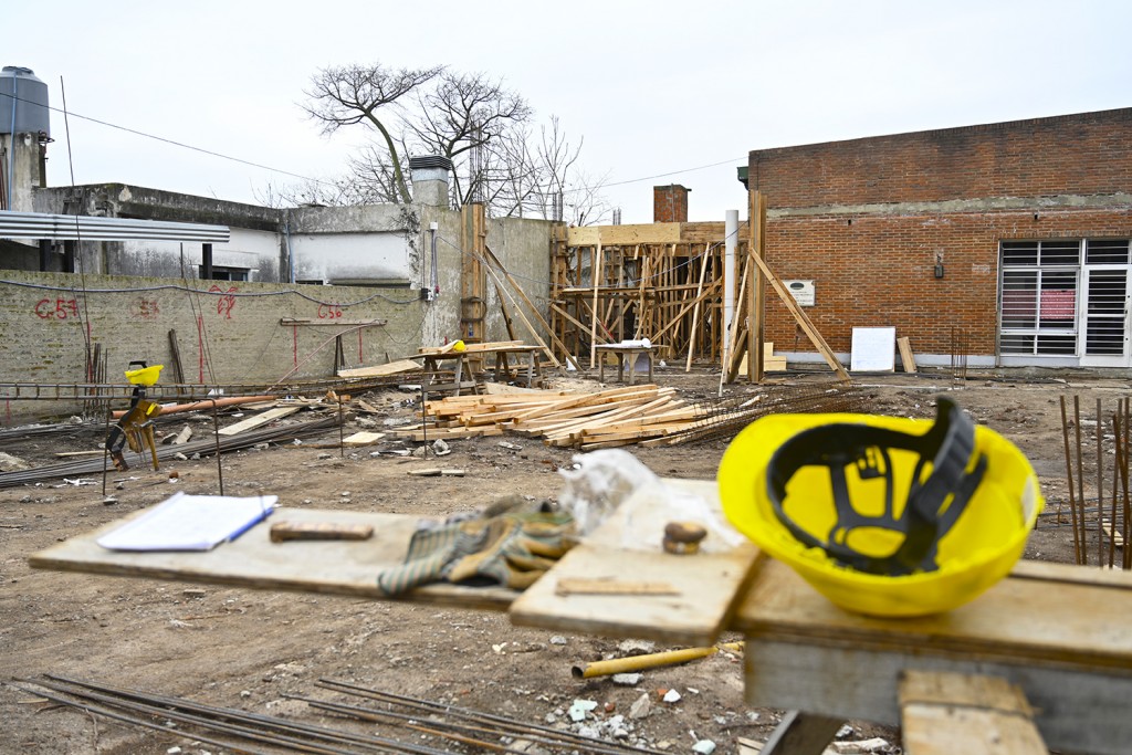Actualmente se está realizando la estructura de hormigón armado, parte de los cimientos y tabiques laterales de la sala. Además, en el vestíbulo que tendrá acceso al SUM, se están colocando columnas, vigas y losas.