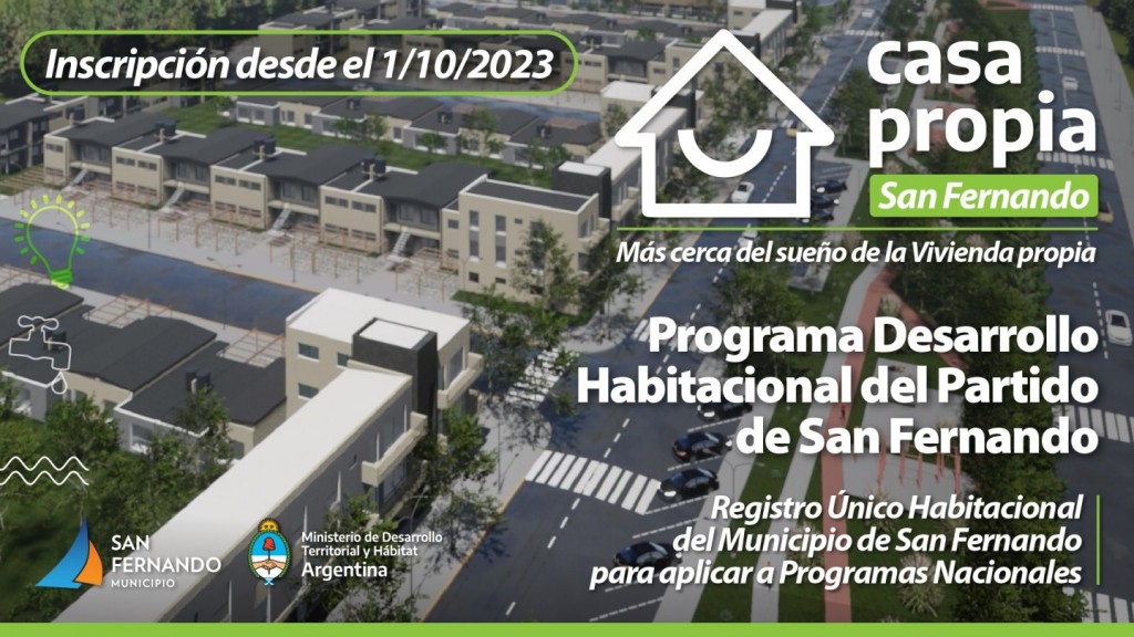 Es el proceso para la inscripción al REGISTRO ÚNICO HABITACIONAL del Municipio de San Fernando, por el cual deberán completar el FORMULARIO DE INSCRIPCIÓN que está disponible en la pagina web de la municipalidad de San Fernando: https://www.sanfernando.gob.ar/casapropia.