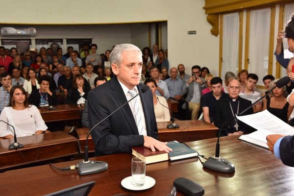 Previamente el Intendente realizó la jura correspondiente en el Honorable Concejo Deliberante, donde estuvo acompañado por su familia, equipo de trabajo, concejales y público en general.