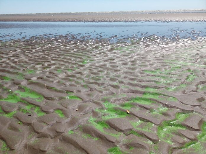 Las cianobacterias se aglomeran y tiñen de verde intenso aguas y orillas.